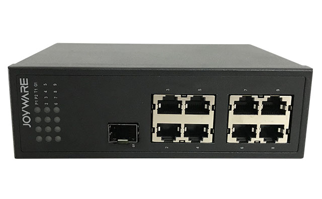 JW-SE20(GF1.Ex)系列非管理型工業以太網交換機,最大支持1個千兆SFP接口, 8個10/100M自適應電口。專為室內外惡劣環境下,視頻穩定傳輸應用而開發設計。能保證視頻在嚴苛環境下傳輸無卡頓。工業級全封閉無風扇、金屬外殼設計,支持設備在-45℃~+85℃環境下正常穩定運行,電源輸入過流、過壓保護及電源系統系統采用冗余設計,支持故障時無縫切換,無需人工干預。高等級 EMC 防護,能有效地抵抗靜電、脈沖、雷擊的干擾,采用抗震的導軌/壁掛式安裝,安裝方便。